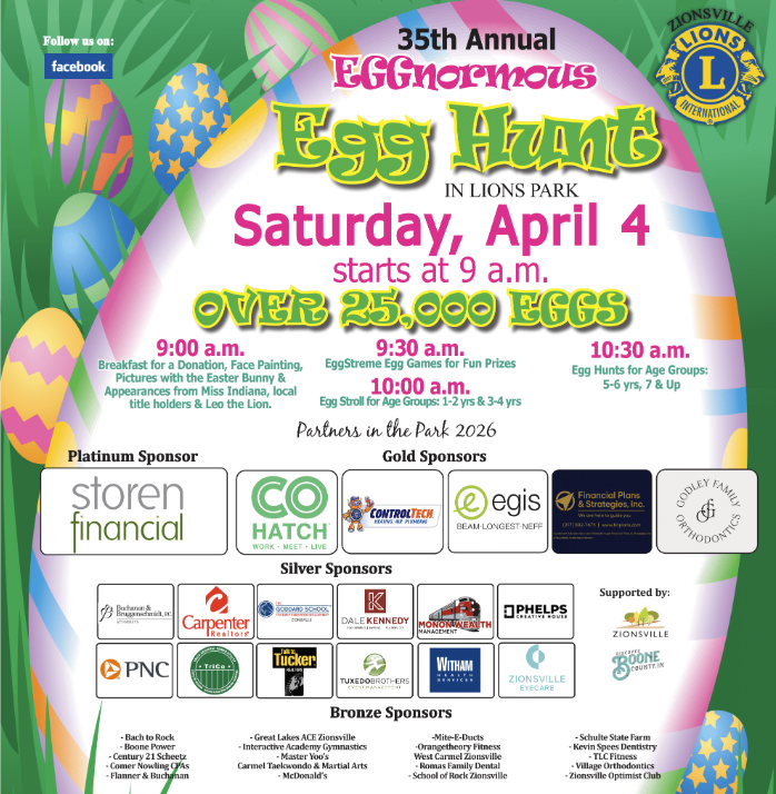 Breakfast for a donation, face painting, pictures with the Easter Bunny & appearances from Miss Indiana Princesses & Leo the Lion.